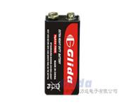 9V方形电池,开路电压9.6~10.35V,容量高,贮存期长,180Ω放电时间240Min