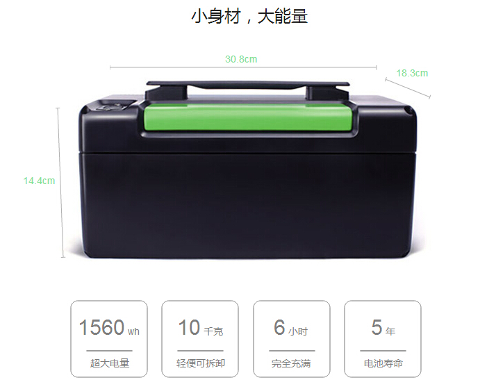 在如此小巧的电池组中蕴含了1560wh电能,足以支持实现100km以上的超长续航里程。